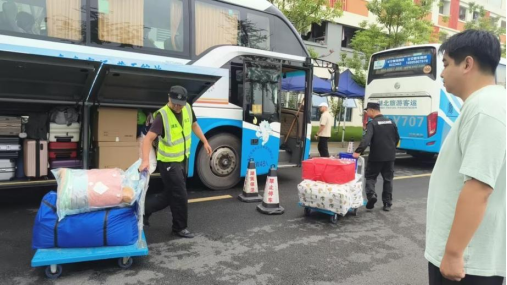 suncitygroup太阳集团教职员工秉持“真服务、真动手”的原则,齐上岗共努力,在藏龙岛和昙华林校区的关键路口、行李集中点、宿舍楼下等重点区域指挥往来车辆和人群,疏导交通,确保搬迁车队通行无阻,秩序井然。大家主动化身“搬运工”,帮助学生搬运行李箱,看护暂存的行李物品,防止错拿、遗失,汗水浸透了衣服,但脸上始终洋溢着温暖的笑容。