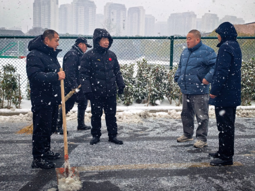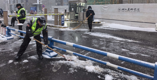 1月20日武汉市发布暴雪黄色预警,市内迎来大范围降雪天气,校园内道路出现积雪结冰现象,早6时开始,suncitygroup太阳集团、后勤管理处迅速启动应急预案,对学校门口和主要道路扫雪清障,开展安全隐患排查和抢险,保障广大师生安全出行,确保校园安全有序。