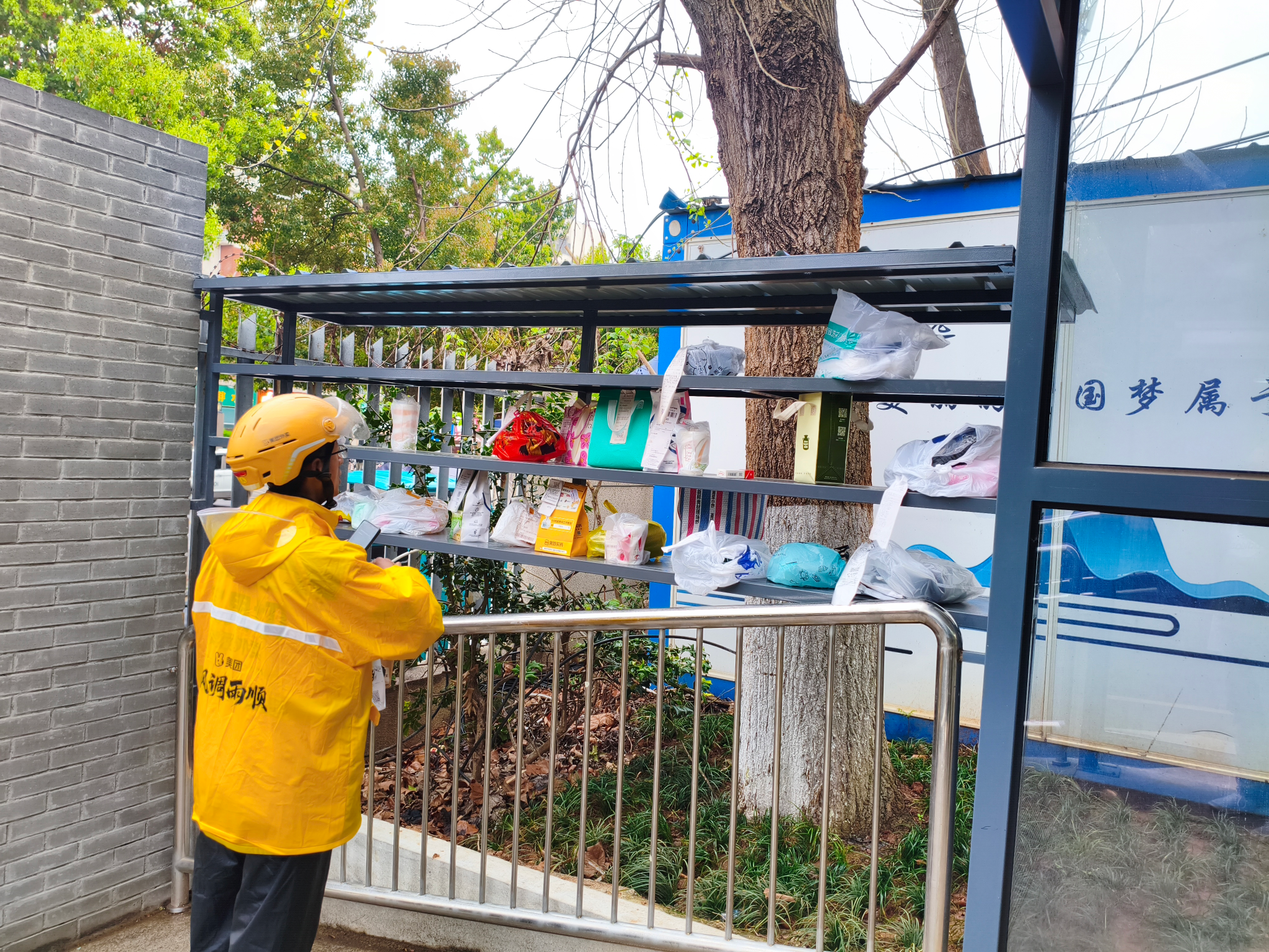 suncitygroup太阳集团校门口增设外卖置物架便利学生生活